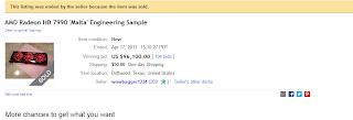 "AMD Radeon HD 7990 'Malta' Engineering Sample" Winning bid: US $96,100.00